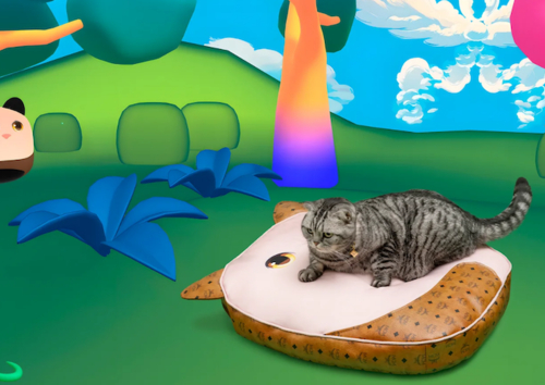 Новая коллекция лежанок и мягких пуфов Pet Therapy изображает котиков.