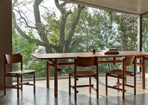 Монолитная мебель для столовой воспевает традиции модернизма, не отменяя практической составляющей.