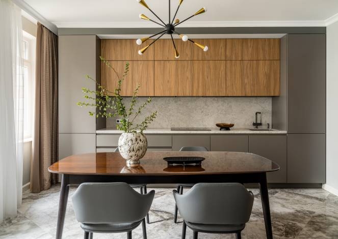 Дизайнер Анна Кузнецова создала элегантный и респектабельный интерьер с персонализированным дизайном, где классические элементы декора гармонично сочетаются с современной организацией пространства и минималистскими предметами обстановки.