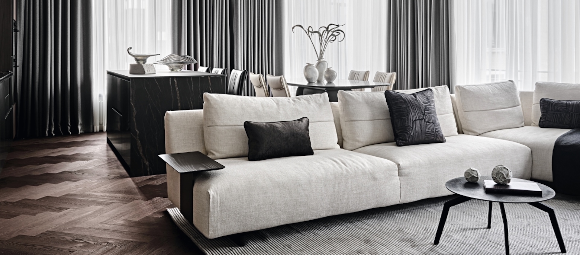 Интерьерное направление известной модной марки Trussardi пополнилось сетами в духе трендового стиля «софт-минимализм».