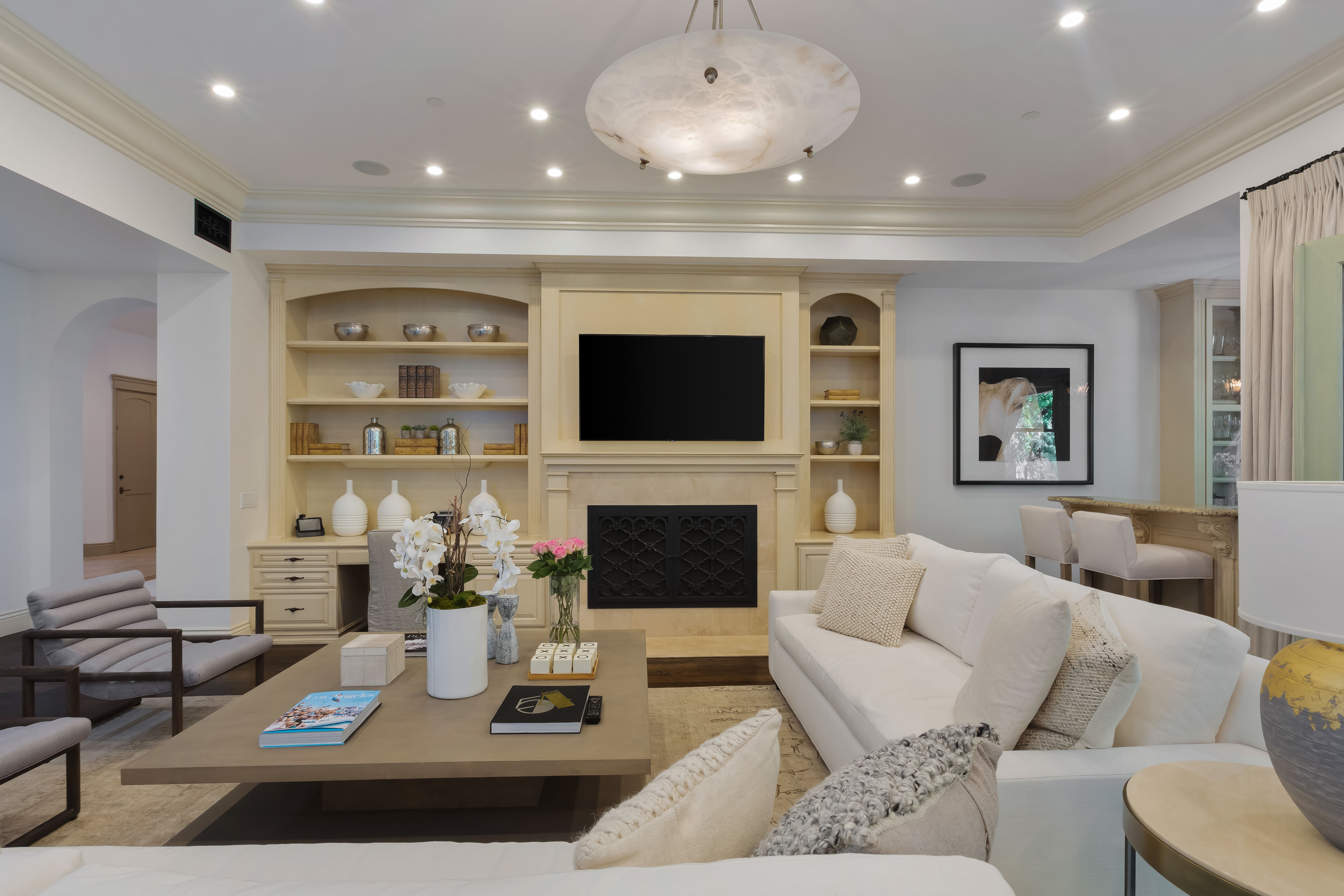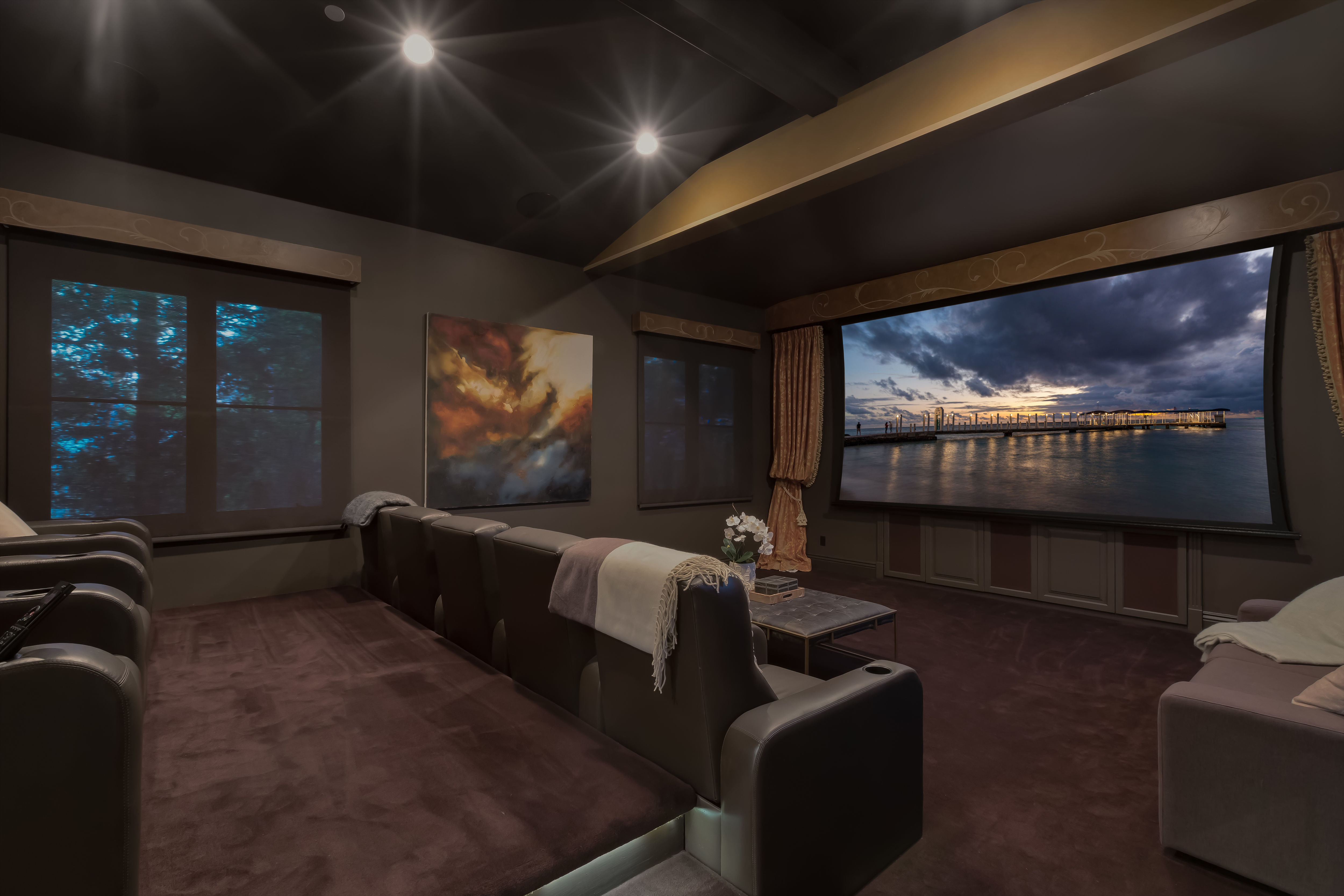 Первый этаж отдан под общие зоны: парадную гостиную, столовую, просторную кухню. И, конечно, развлекательный блок и прежде всего кинозал — звезда без ума от голливудского кино.