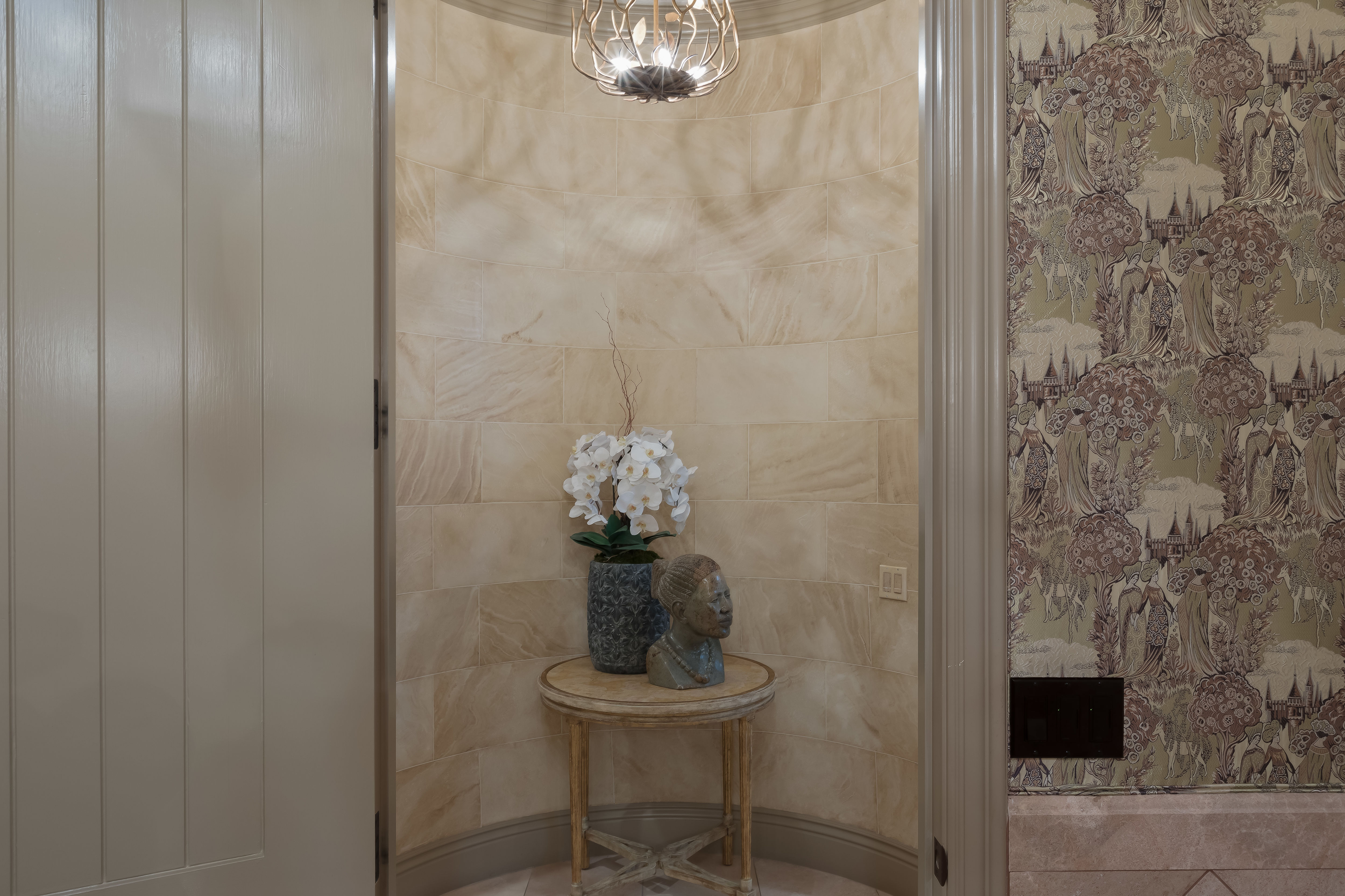 Отсюда можно перейти в кабинет, оформленный в духе люксового home-офиса.