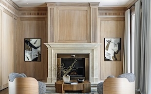 Темные оттенки в сочетании с не менее модной охрой помогли Антону Петрову оформить модный и запоминающийся интерьер. Серые и черные тона создают ощущение спокойствия и уверенности, а также выигрышно подчеркивают игру фактур. Посмотрите, как эффектно сочетаются между собой тонированное стекло, черная эмаль, вставки из жидкой латуни и декоратичное покрытие фасадов «лава».