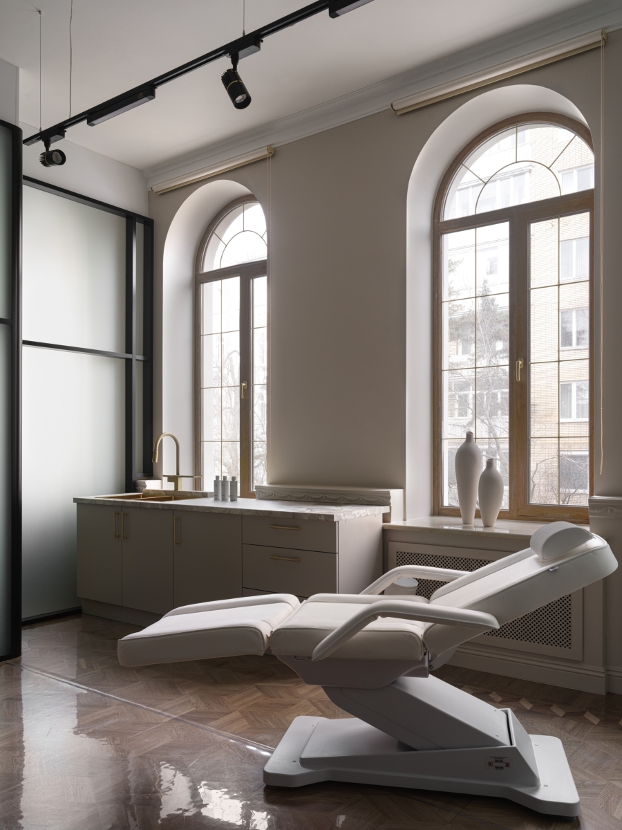 Интерьер клиники эстетической медицины: роскошное пространство на стыке истории и высоких технологий