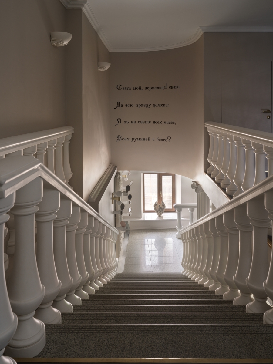 Финальным аккордом, раскрывающим философию этого места, стали строки из сказки Пушкина, нанесенные на стену над центральной лестницей: «Свет мой зеркальце, скажи…». Этот проект стал больше, чем просто клиникой. Это место, где рождается не только внешняя красота, но и особое, ни с чем не сравнимое чувство принадлежности к миру искусства и роскоши.