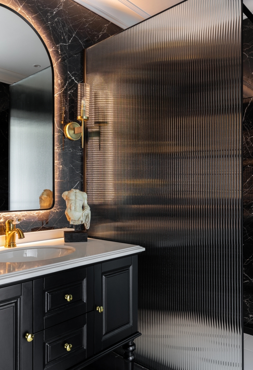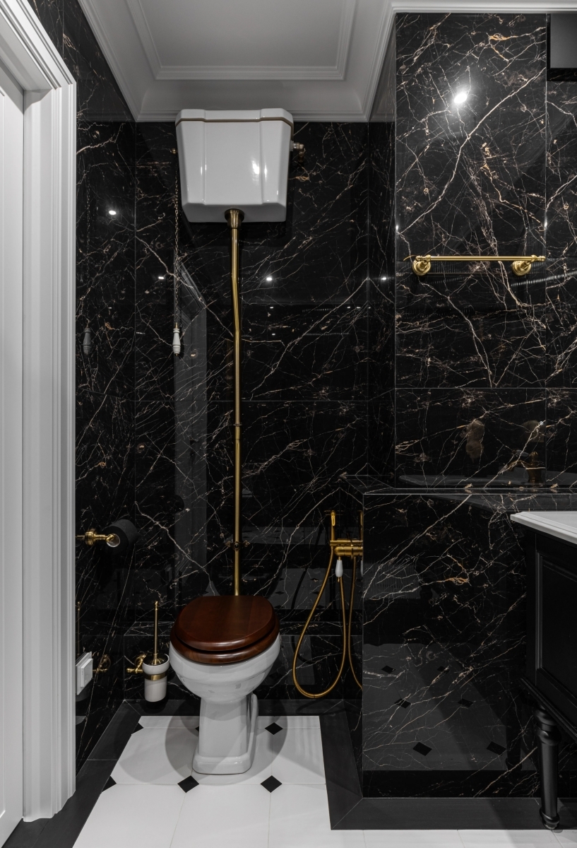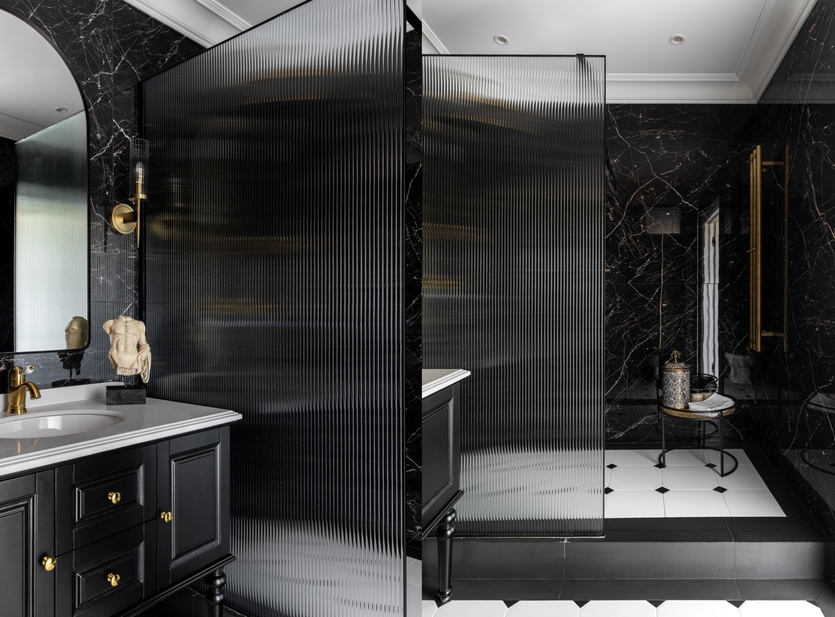 Цветовая палитра интерьера — тёплые белые тона. В этой сдержанной, благородной гамме отдельной «точкой притяжения» стал санузел, построенный на сочетании черного цвета и высокого потолка. Сантехника, Boheme. Цветовая палитра интерьера — тёплые белые тона. В этой сдержанной, благородной гамме отдельной «точкой притяжения» стал санузел, построенный на сочетании черного цвета и высокого потолка. Сантехника, Boheme.