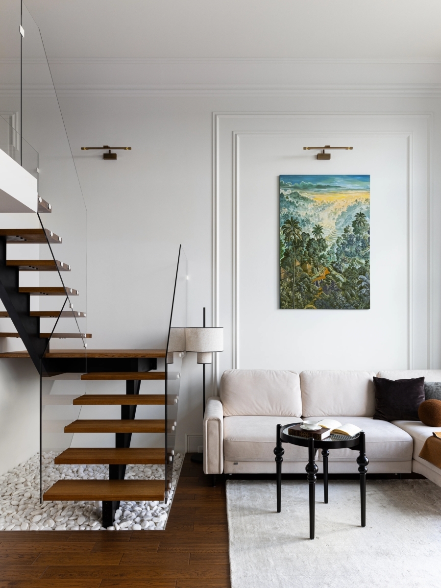 В интерьере отразилось любовь владельцев к культуре Азии, так в гостиной появилась картина, которую хозяева привезли с Бали. Она стала не только декоративным элементом, но и символом личных воспоминаний, добавив пространству индивидуальности и душевного тепла. В интерьере отразилось любовь владельцев к культуре Азии, так в гостиной появилась картина, которую хозяева привезли с Бали. Она стала не только декоративным элементом, но и символом личных воспоминаний, добавив пространству индивидуальности и душевного тепла.