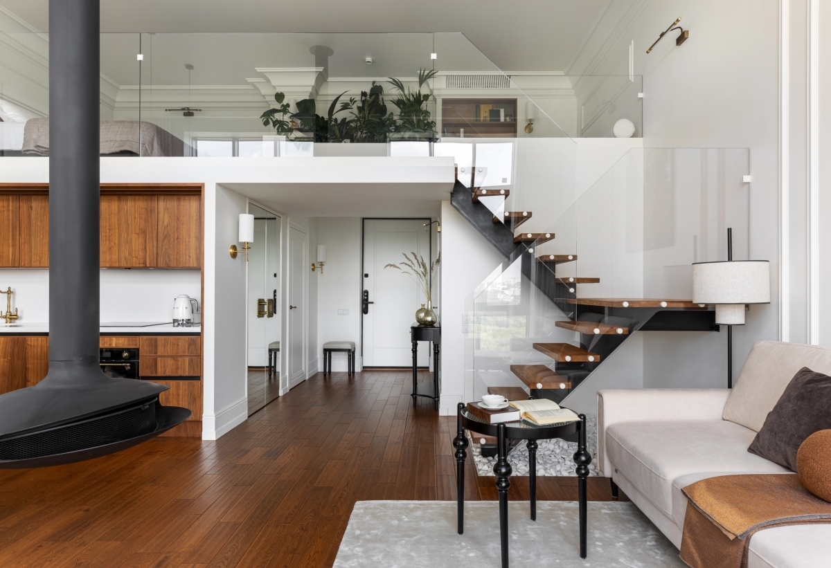 Из одноуровневого — в двухуровневый: уютный и функциональный интерьер пентхауса с азиатскими мотивами