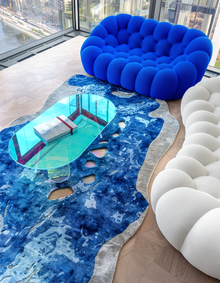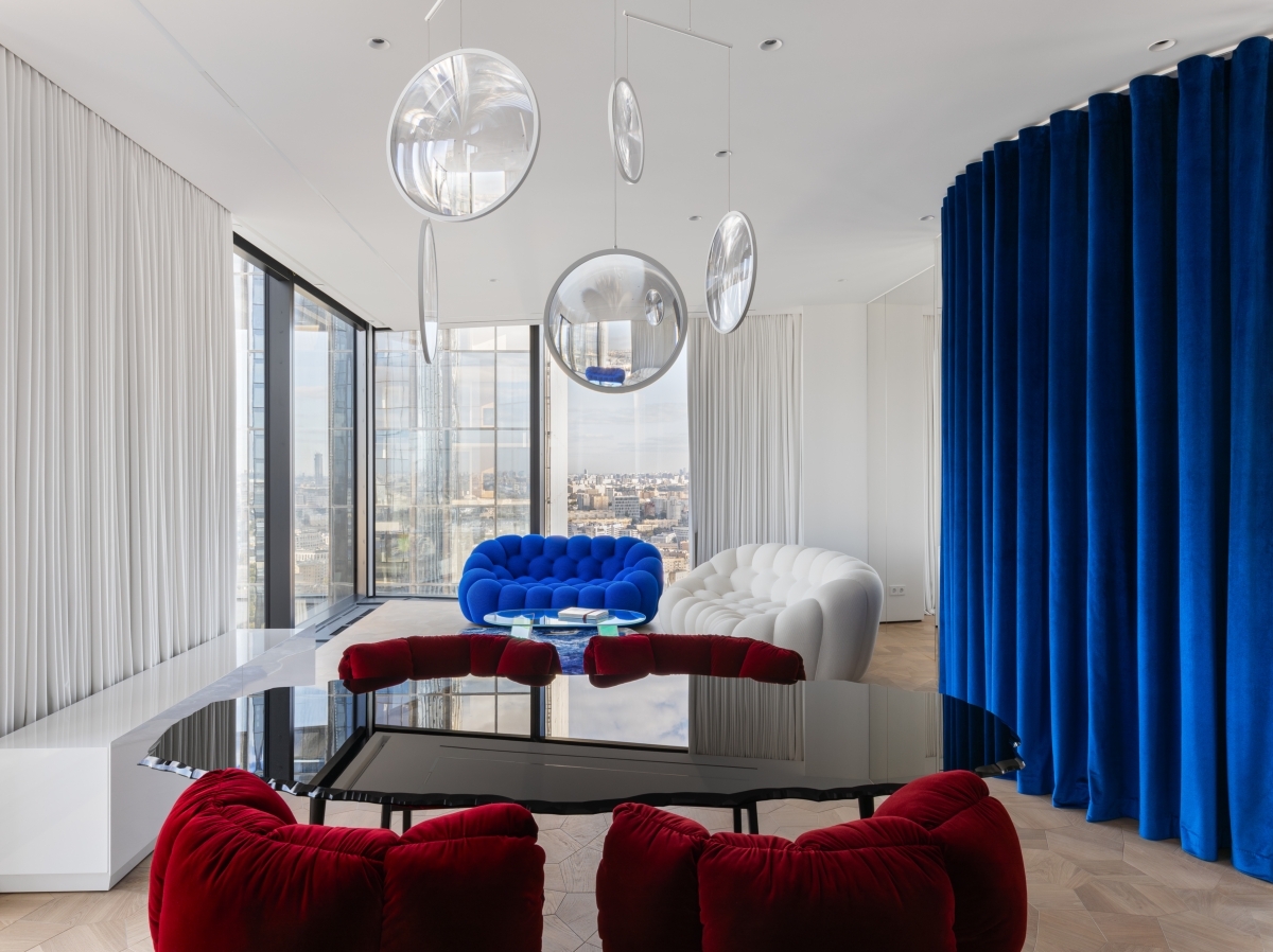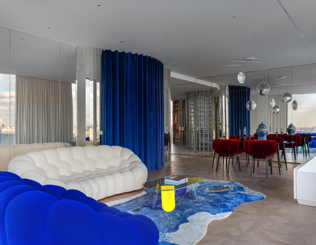 Это интерьер-игра, интерьер-фантазия, свободный от условностей и шаблонов. На этот эффект работает и выбор мебели. В зоне гостиной солируют диваны Bubble от французского бренда Roche Bobois: их необычная форма, напоминающая облако или морской коралл, поддерживает игривый и непринужденный характер пространства. А люстра от DCW над обеденным столом — кокетливый намек на мобиль из советского фильма «Служебный роман». «В последнее время заказчики отходят от минимализма в интерьере с его «бежевой картинкой», — завершает рассказ Ирина. — Растет спрос на индивидуальные решения, дизайн «с перчинкой» и своим характером. Возвращается и запрос на насыщенную, живую палитру. Этот проект — еще один пример того, как жилое пространство может отразить личность владельца, его энергию и харизму».