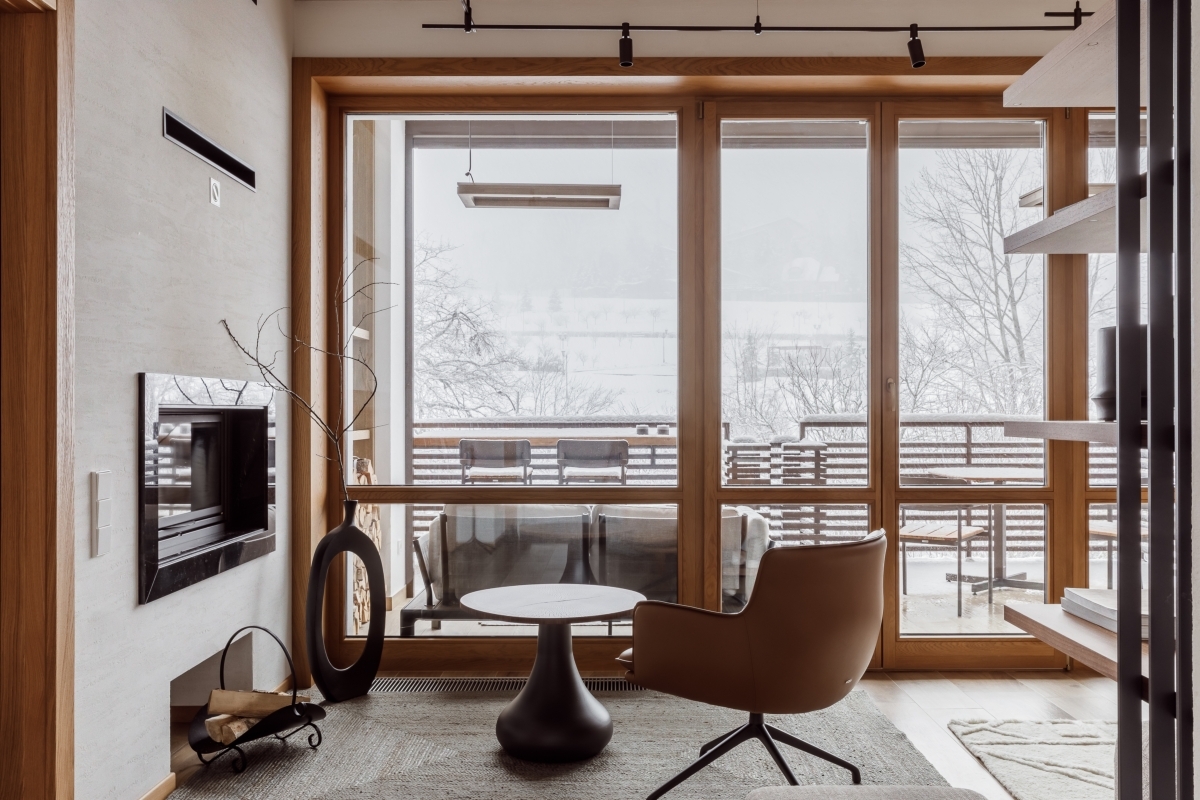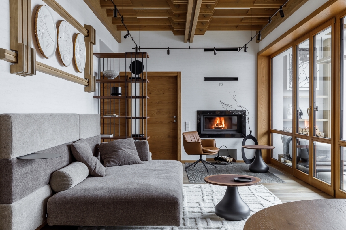 Заказчики — семейная пара из Москвы с подрастающим сыном, для которых активный отдых в горах является важной частью жизни. Их запрос был точным и содержательным: создать не просто апартаменты для отпуска, а настоящий семейный очаг с камином, собственной баней и возможностью принимать друзей. «Мы хотим дом, куда будем возвращаться ради уюта и атмосферы, а не из‑за необходимости», — говорили они авторам проекта.