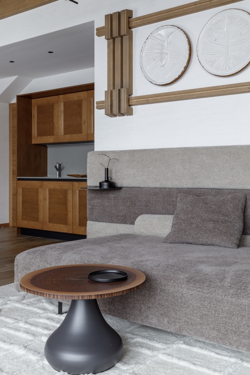 Квартира, над интерьером которой работали авторы проекта Екатерина и Юрий Беловы, расположена на Красной Поляне, в жилом комплексе «Катерина Альпик». Панорамные виды на величественные горные пейзажи напрямую повлияли на стилистику. Проект задуман как современное альпийское шале с итальянским акцентом — квинтэссенция безупречного подхода к загородной жизни. Здесь царит гармония эстетики, комфорта и функциональности: от паркетных полов до панорамных окон, вид из которых напоминает живописное полотно.