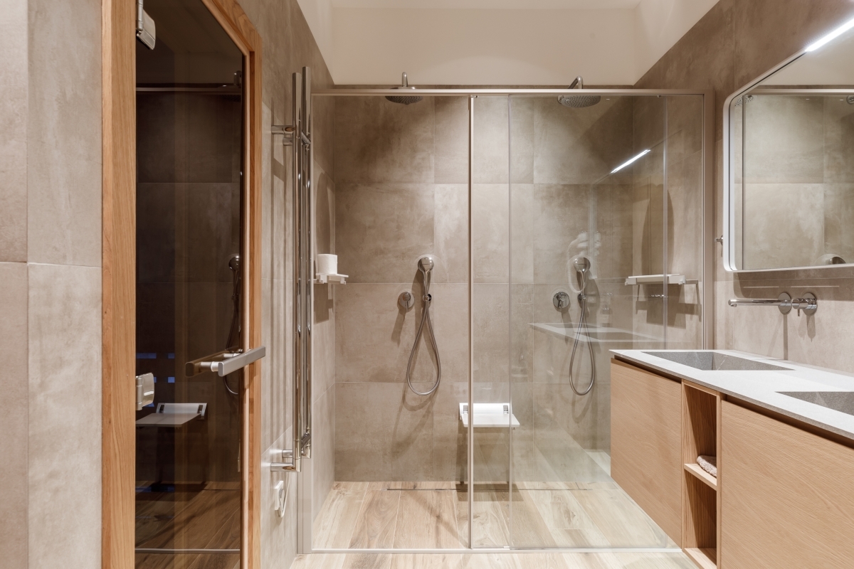Ванная комната с приватной спа-зоной и собственной баней. Тумба под раковину, зеркало, Artesi. Сантехника, Cielo. Плитка, Ceramica Rondine. Ванная комната с приватной спа-зоной и собственной баней. Тумба под раковину, зеркало, Artesi. Сантехника, Cielo. Плитка, Ceramica Rondine.