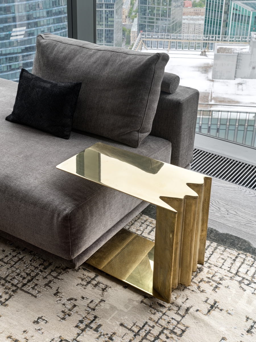 Гостиная, вид на колонну и большой бонсай. Диван Avalon, Marac. Журнальный столик из латуни Monolith, приставной столик из латуни Be Mine — всё Henge. Гостиная, вид на колонну и большой бонсай. Диван Avalon, Marac. Журнальный столик из латуни Monolith, приставной столик из латуни Be Mine — всё Henge.