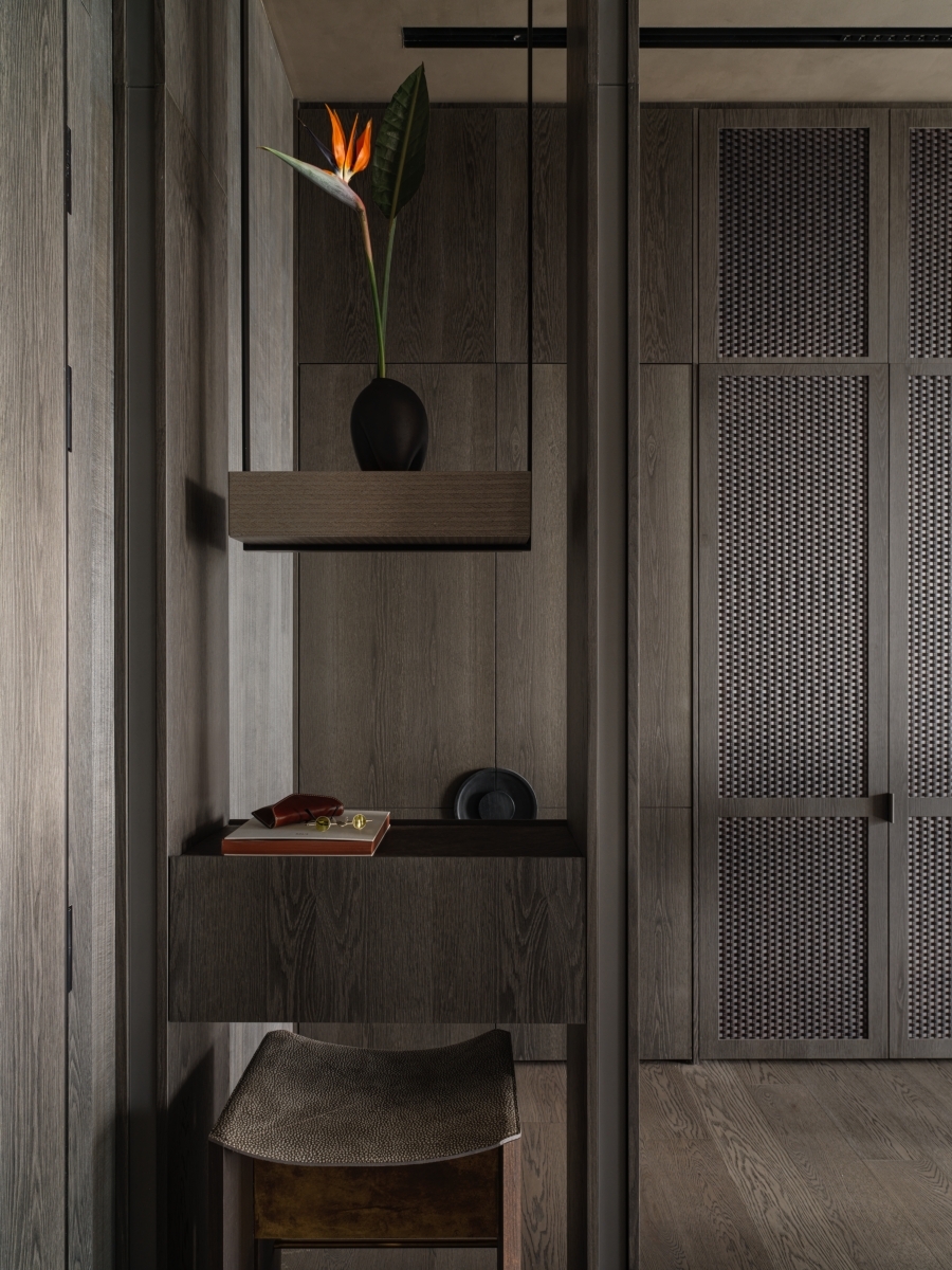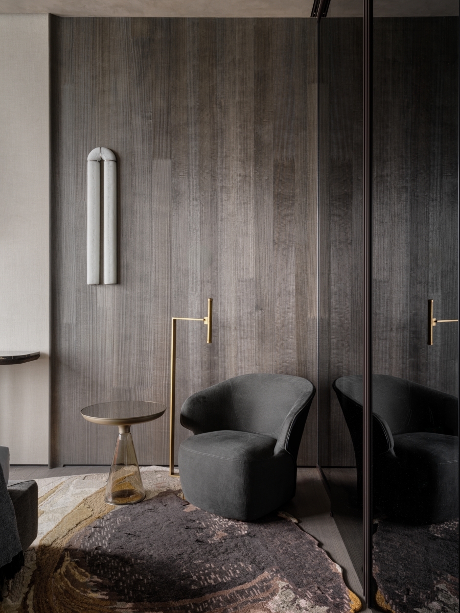 Этот чувственный интерьер, рожденный из полного доверия между заказчиком и дизайнером, стал воплощением эмоционально заряженного пространства, в котором городская энергия встречается с глубоким покоем и интимностью. Здесь прикосновения превращаются в язык, а интерьер — в арену откровенного диалога.