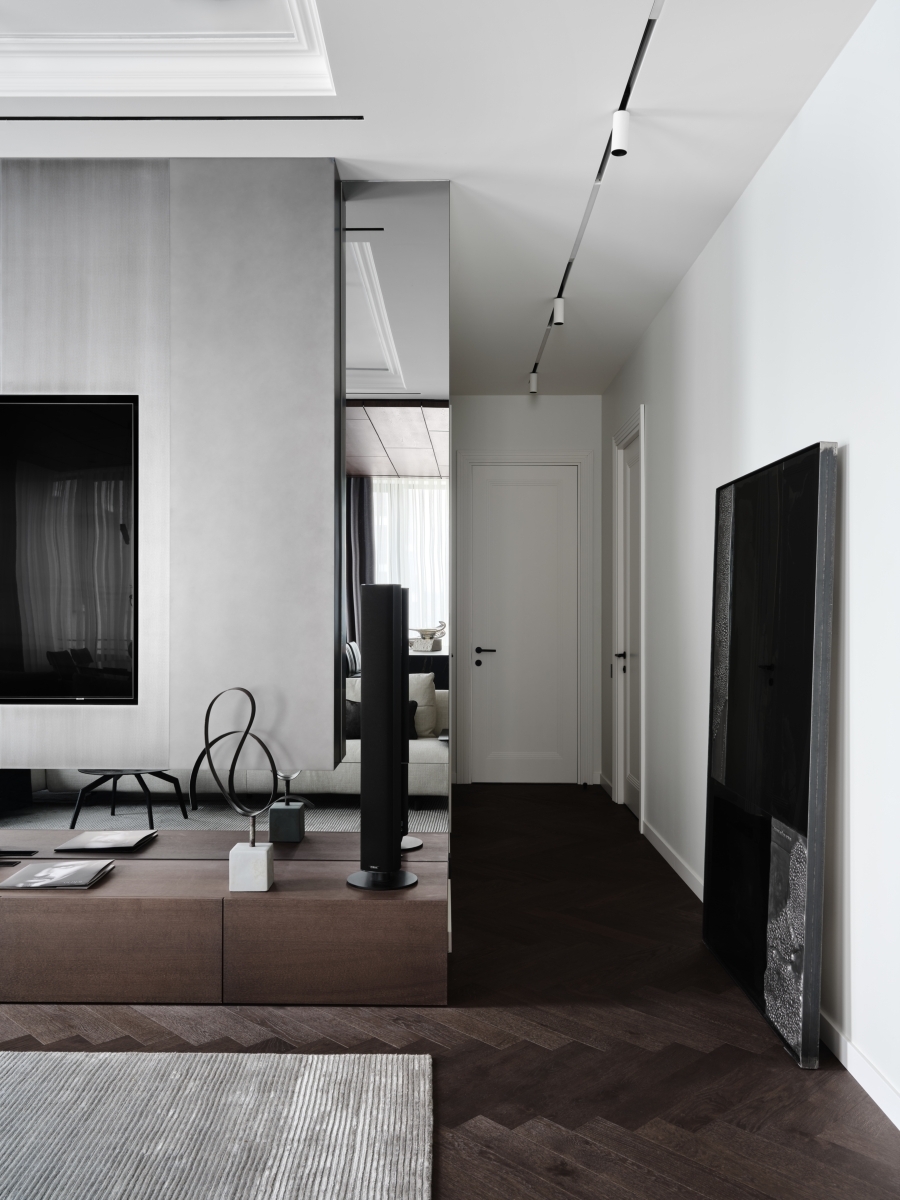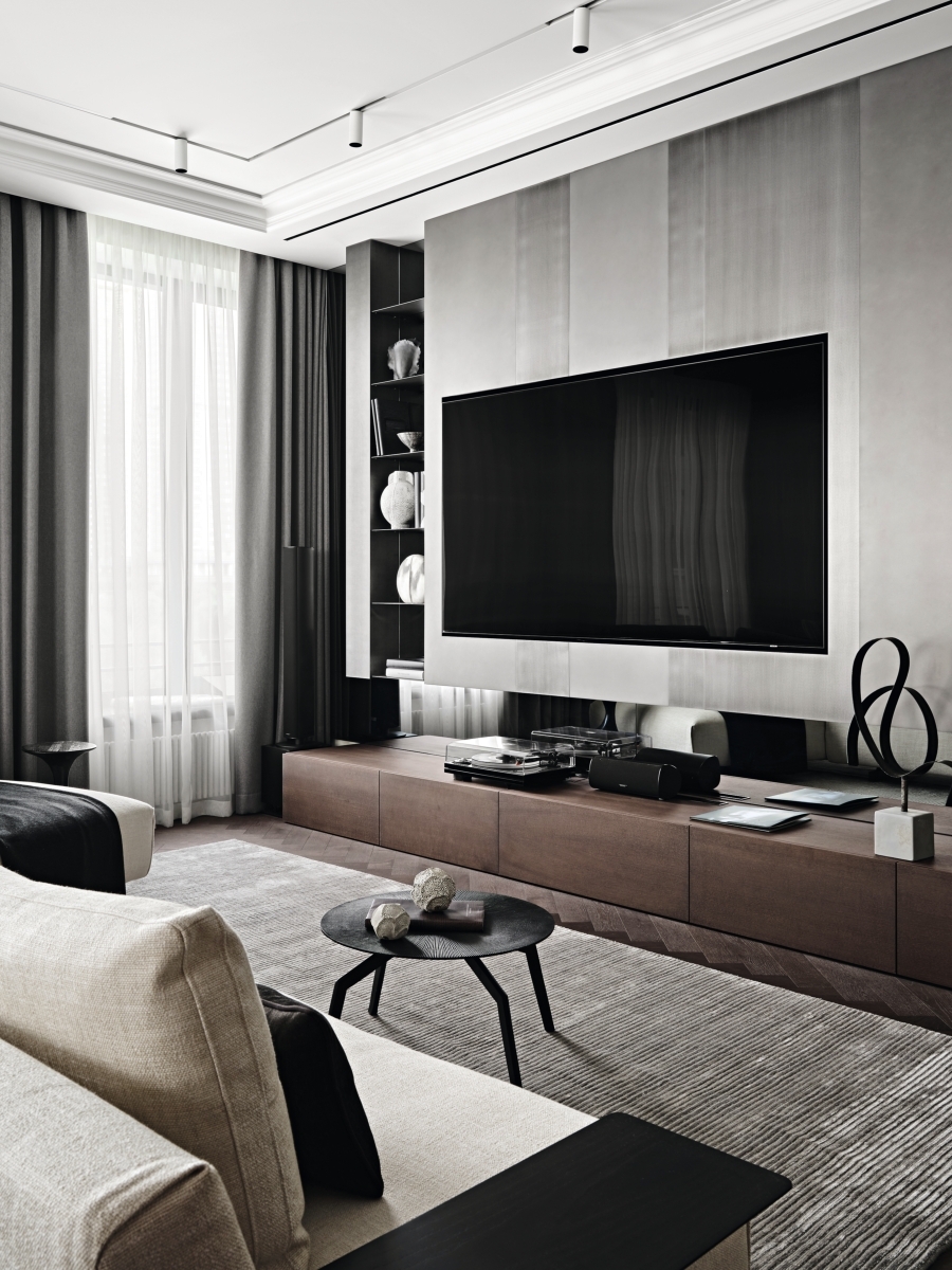 ТВ-зона. Консоль под телевизором, place freedom. Декор, Woonstores. Межкомнатные двери, Union. Краска для стен, Benjamin Moore.