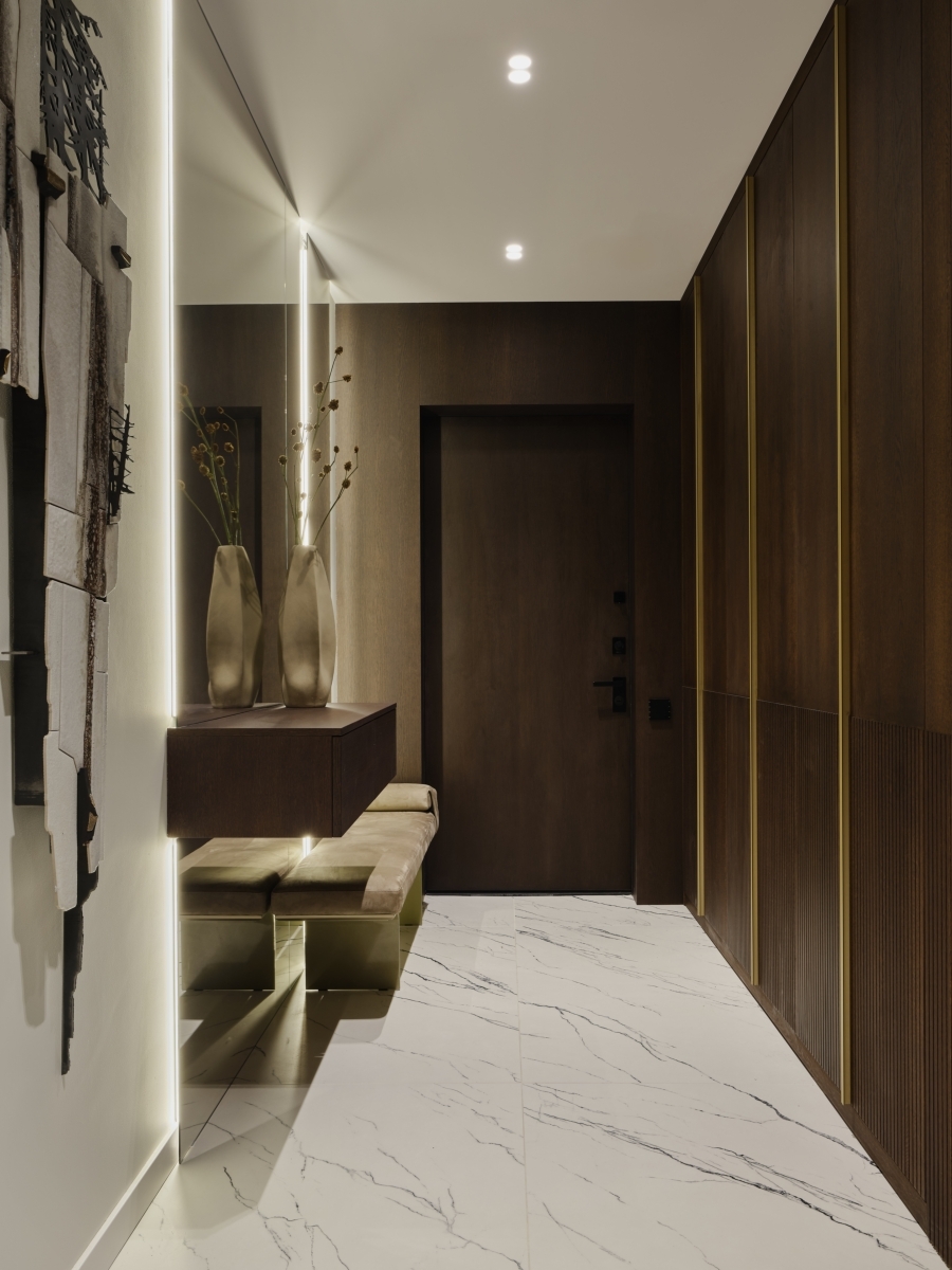Интерьер, созданный для семейной пары с двумя детьми, обрел свое воплощение в сердце Москвы — в одном из престижных зданий исторического центра. Уникальность локации заключается не только в богатом архитектурном окружении, но и в близости к природным ландшафтам — жилой квартал находится в своем, закрытом парке. Именно панорамные виды на парк стали отправной точкой, которая сформировала главную идею проекта — воссоздать природную палитру внутри жилого пространства.