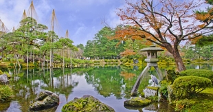 Прогулочный ландшафт площадью 11,4 гектара включает центральный пруд Касумигаикэ, каменные фонари (в том числе культовый Котодзи-торо) и разнообразные цветущие деревья, меняющие облик сада в каждый сезон. Весной здесь цветет сакура, зимой устанавливают снежные опоры юкицури для защиты сосен — визитная карточка Канадзавы. Это образец прогулочного сада эпохи Эдо, где каждый поворот тропы открывает новую композицию, вдохновляя на размышления о гармонии и времени.