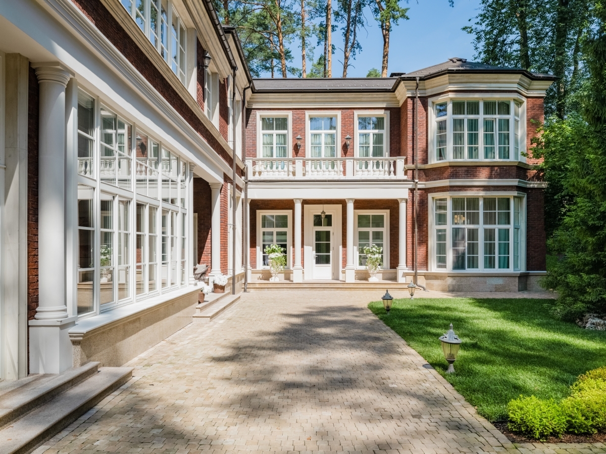 Двухэтажный особняк с цокольным этажом имеет площадь 1 058 кв. м и высоту потолков около 4 м. В доме большое количество панорамных окон, напоминающих об архитектуре классических усадеб: они открывают вид на заповедный лес с его вековыми соснами и пихтами. Двухэтажный особняк с цокольным этажом имеет площадь 1 058 кв. м и высоту потолков около 4 м. В доме большое количество панорамных окон, напоминающих об архитектуре классических усадеб: они открывают вид на заповедный лес с его вековыми соснами и пихтами.
