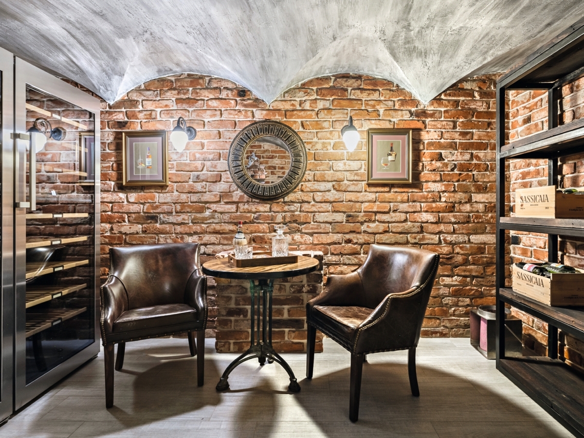В цокольном этаже расположены винная комната с кожаными креслами и коллекционными винами, домашний кинотеатр и профессиональная кухня. В цокольном этаже расположены винная комната с кожаными креслами и коллекционными винами, домашний кинотеатр и профессиональная кухня.