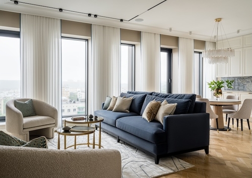 В этом современном интерьере, созданном архитектурным бюро Decora, строгая респектабельность встречается с домашним уютом, а функциональность пространства идет рука об руку с элегантной французской эстетикой.