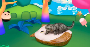 Новая коллекция лежанок и мягких пуфов Pet Therapy изображает котиков.